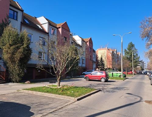 Miejsca parkingowe dostępne są na zamkniętym terenie dla mieszkańców plus dla wszystkich przy osiedlowej ulicy.
