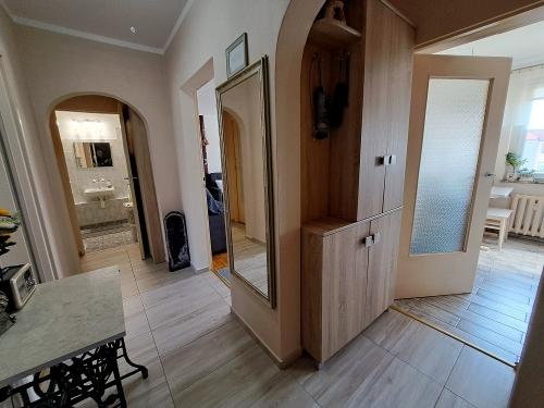 Rozkład mieszkania to: przedpokój, salon z wyjściem na balkon, 2 sypialnie, kuchnia, łazienka z wanną i osobno wc. Mieszkanie jest dwustronne z ekspozycja okien północ-południe.