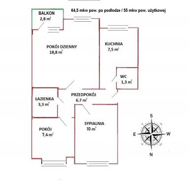 Mieszkanie rozkładowe 3 pokoje 64 m² Wrocław-Fabryczna - Oporów