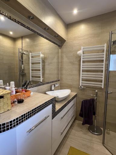 Część prywatna obejmuje trzy sypialnie, zapewniające wygodę wszystkim domownikom. Jedna z nich została zaprojektowana w sposób umożliwiający funkcjonowanie jako niezależne mieszkanie – posiada osobne wejście z zewnątrz, własną łazienkę oraz przygotowane przyłącza pod aneks kuchenny. To doskonałe rozwiązanie np. dla gości, starszych członków rodziny lub jako przestrzeń do pracy.