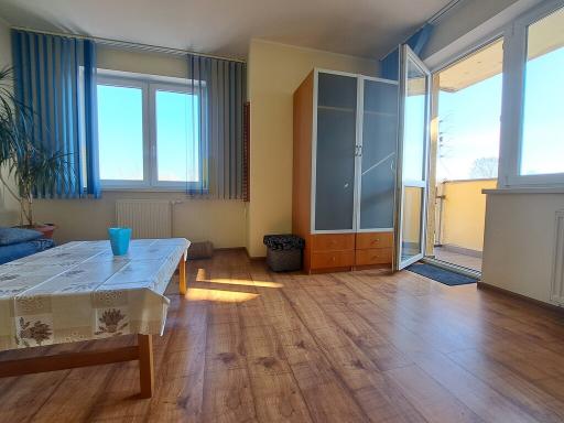 W mieszkaniu mamy pełen rozkład czyli: przedpokój z którego rozchodzą się drzwi do 2 pokoi, salonu z wyjściem na balkon i sypialni, jasnej kuchni oraz łazienki z wc.