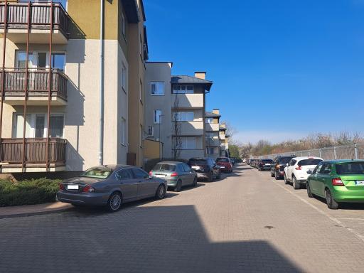 Przed budynkiem miejsca postojowe dla mieszkańców.
