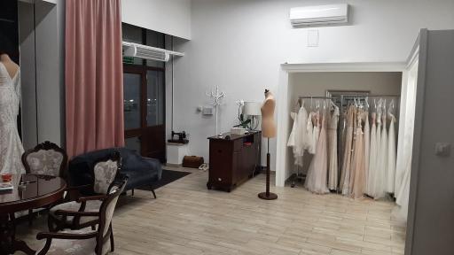 Lokal wykończony w dobrym standardzie, gotowy do prowadzenia działalności. Od 2018 roku funkcjonuje tu atelier sukni ślubnych (projektowanie, szycie i sprzedaż). Wcześniej mieścił się oddział banku.
